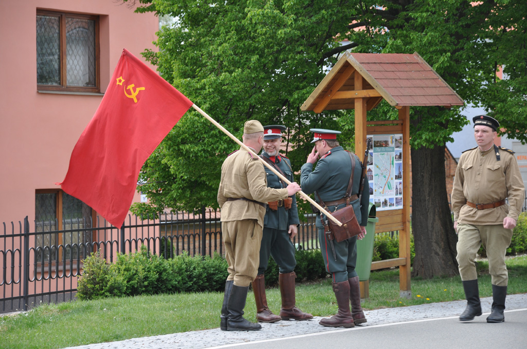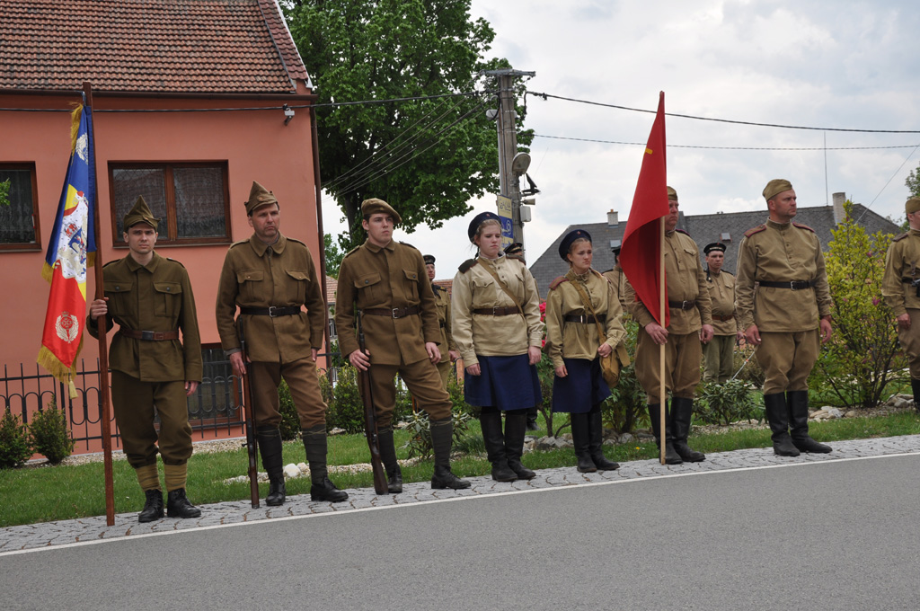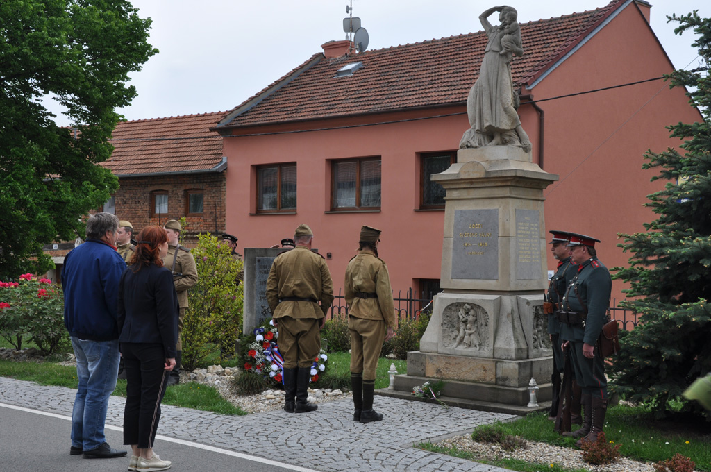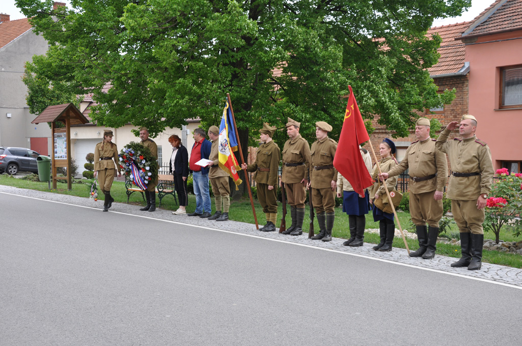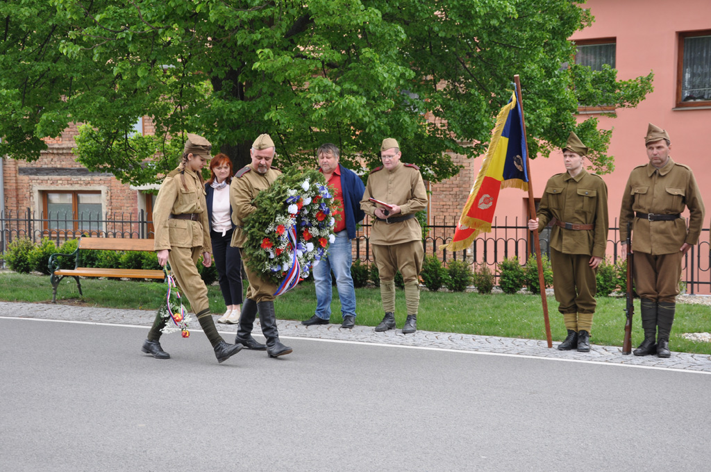 Kladení věnců obětem 2. sv. války a vzpomínka na československou, ruskou a rumunskou armádu, které osvobozovaly okolí Prostějova.